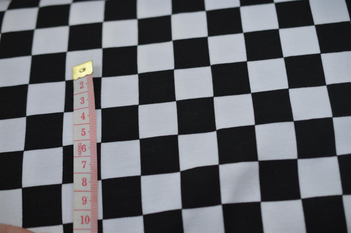 Økotex bomulds jersey, Sort/hvid ternet