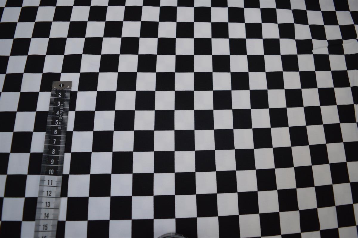 Økotex bomulds jersey, Sort/hvid ternet