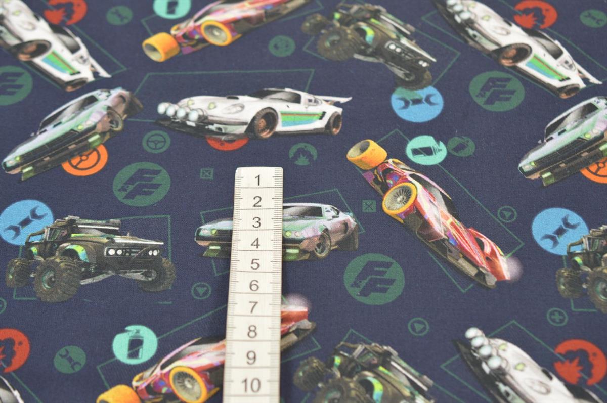 Økotex bomuld/poplin Blå m/Biler