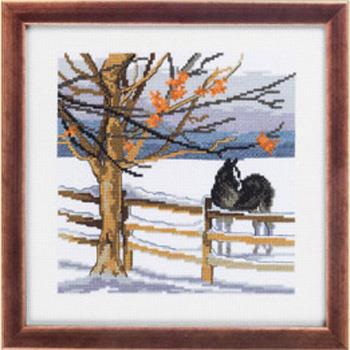 Pakningen indeholder: stof, garn, nål og diagram