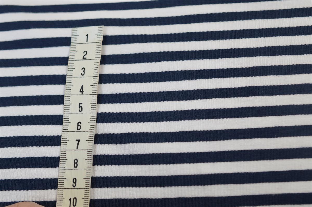 Økotex bomulds jersey Marine/hvid strib