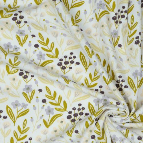 Økotex bomulds jersey Glitter Flowers, White