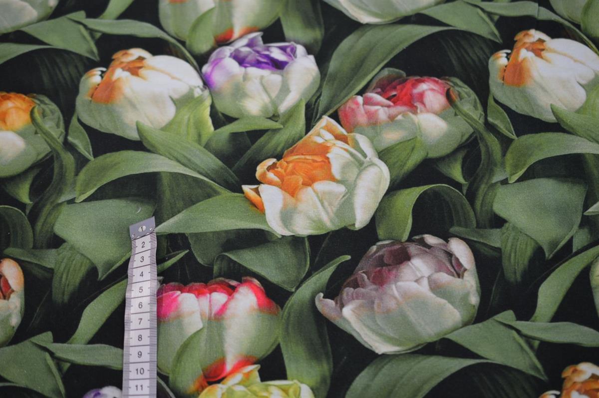 Økotex bomulds jersey m/Tulipaner