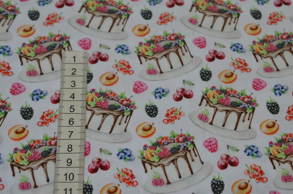 Patchwork stof med Lagkage og frugt