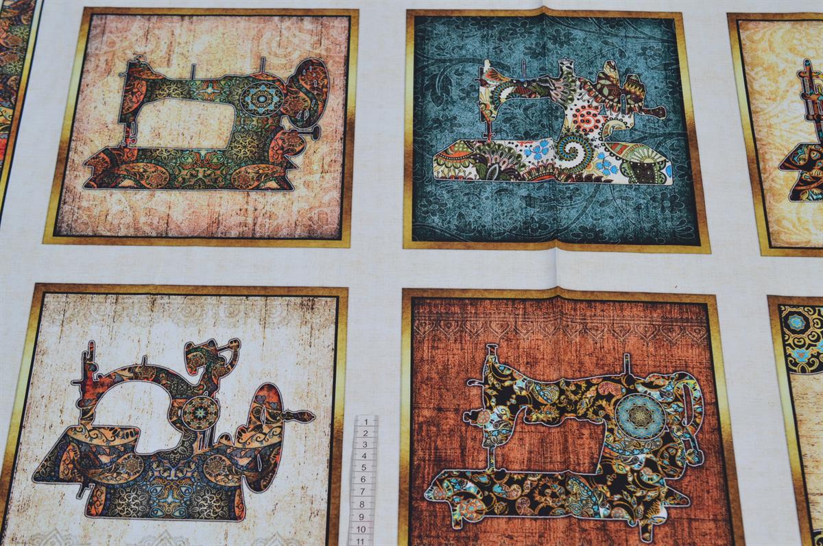 Patchwork m/firkanter Symaskine Råhvid bund