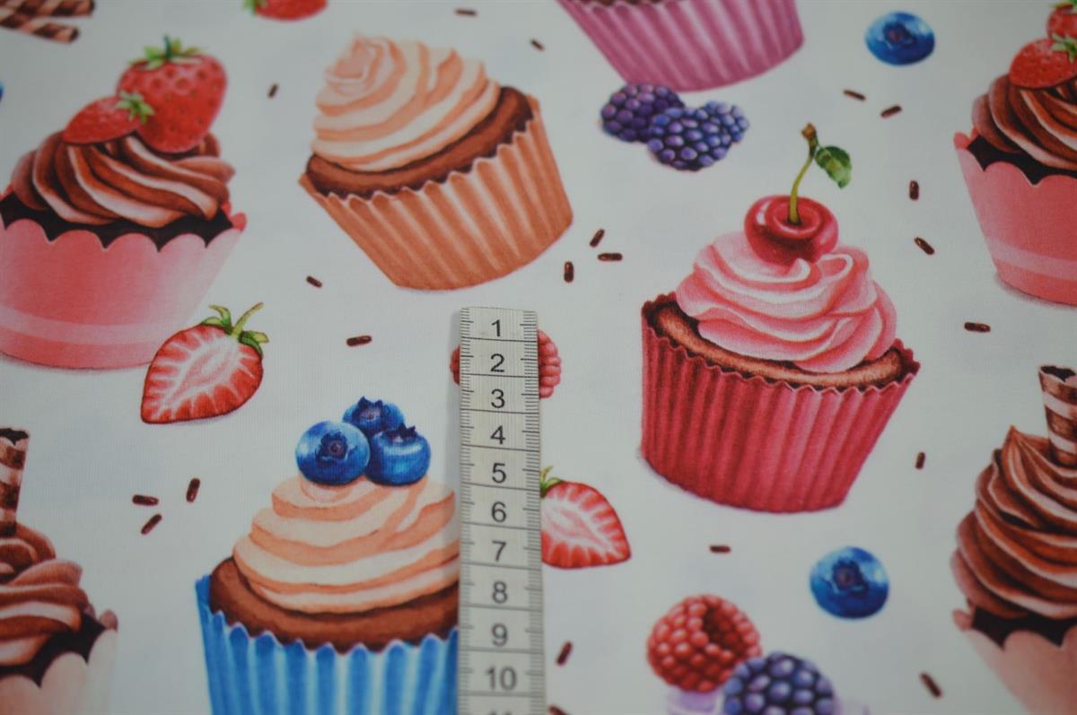 Økotex bomulds jersey Hvid m/Cupcakes