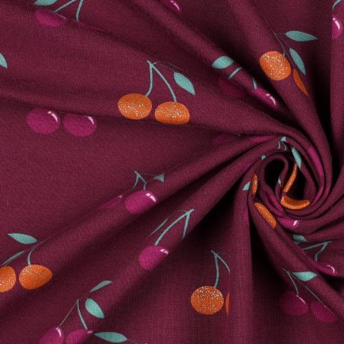 Økotex bomulds jersey Glitter Cherries, Berry