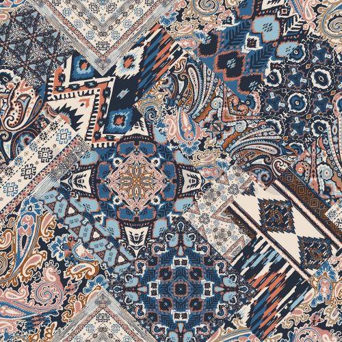 Viscose digtial Ethnic Patchwork, Ecru