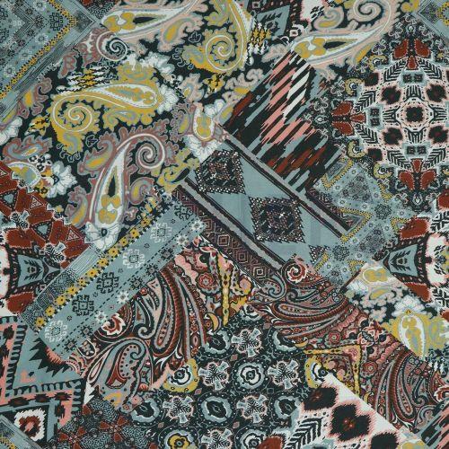 Viscose digtial Ethnic patchwork, Light cyan