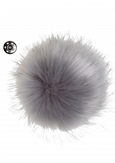 Pompon m/trykknap Grå