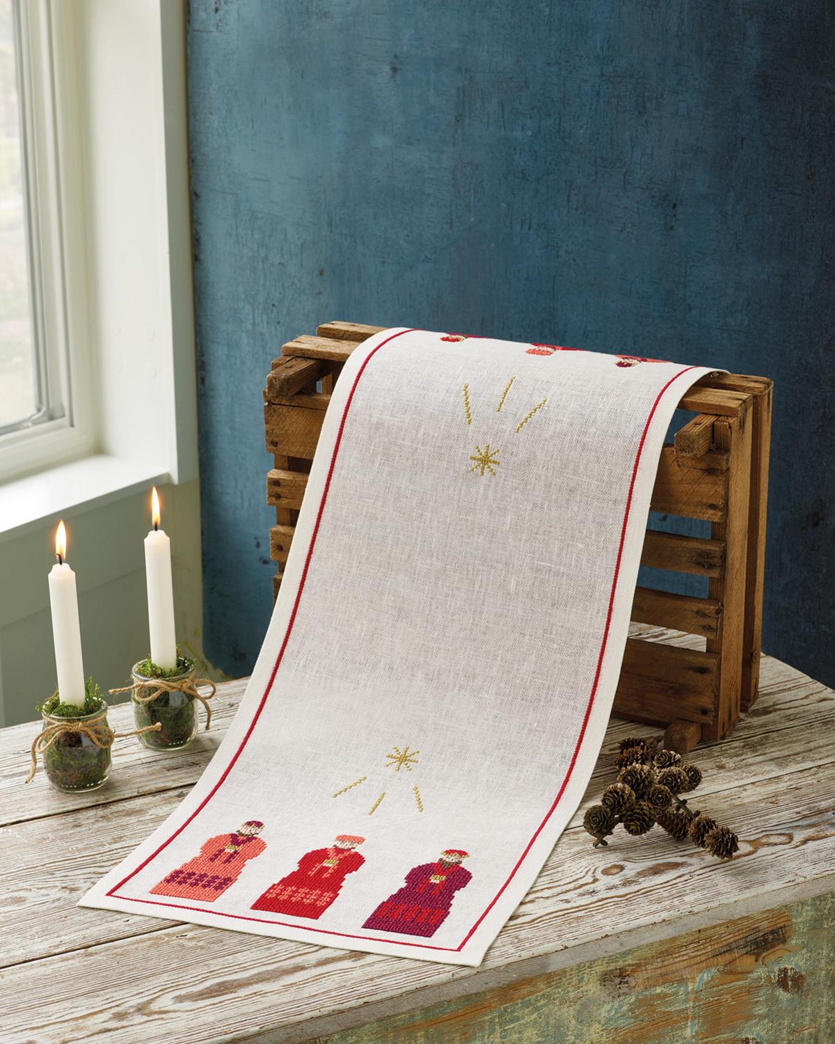 Hvid hørlærred 8thr/cm med mouline og perlegarn