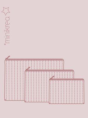 Quiltet lynlås pung i tre størrelser. Praktisk lille sæt af lynlåspunge/tasker.