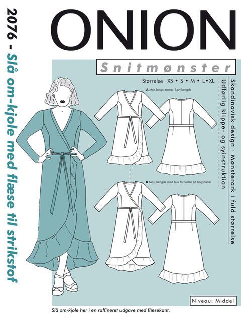 Slå om-kjole med flæse til strikstoffer Str. XS-XL