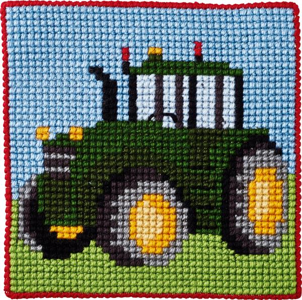 nål uden spids, acrylgarn, printet canvas