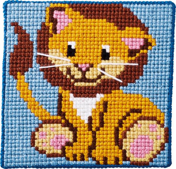 nål uden spids, acrylgarn, printet canvas
