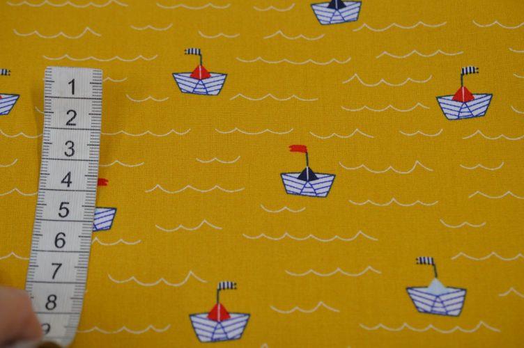 Økotex bomuld/poplin Karry m/bølge og båd