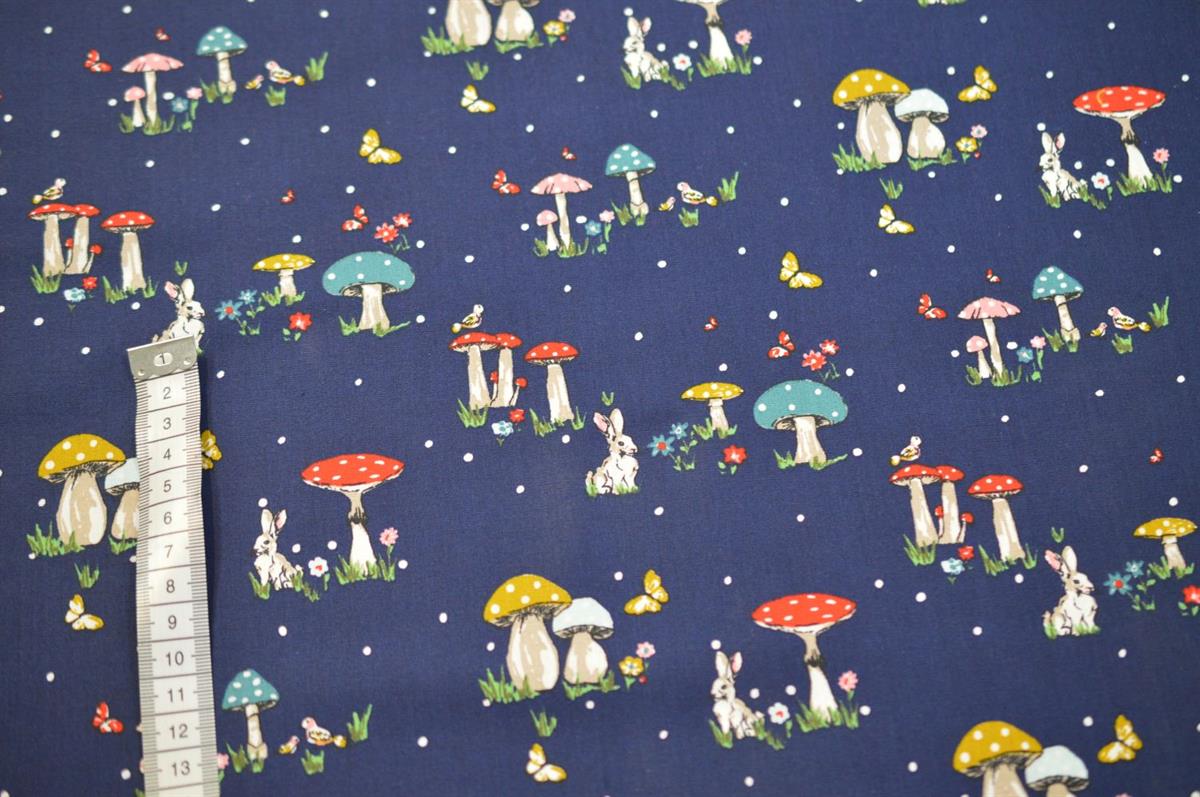 Økotex Bomuld/Poplin Mushroom Blå