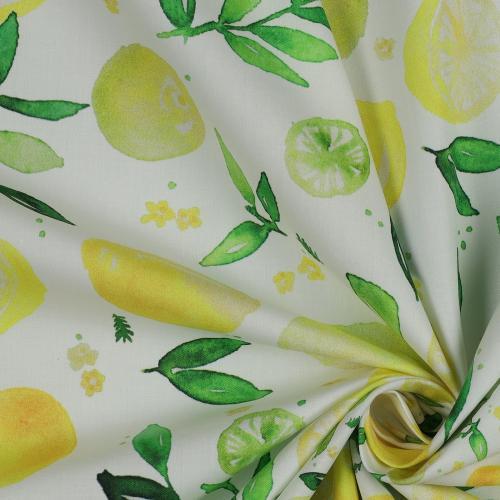 Fine poplin digital Lemon, White