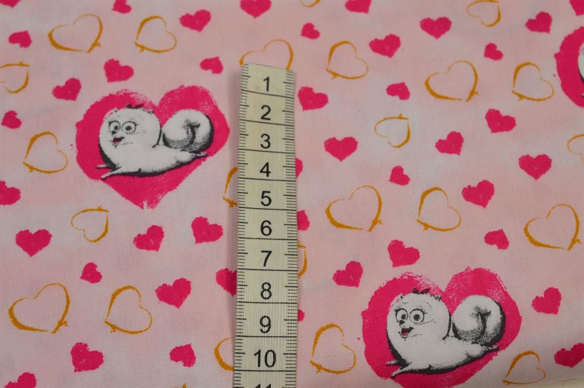 Bomuld/poplin Lyserød m/hjerter