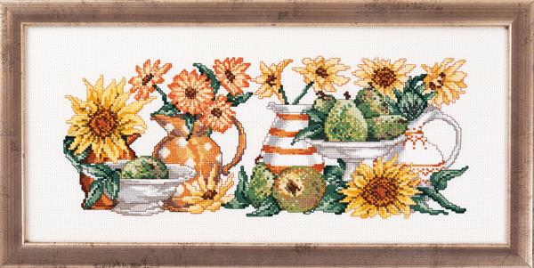Pakningen indeholder: stof, garn, nål og diagram