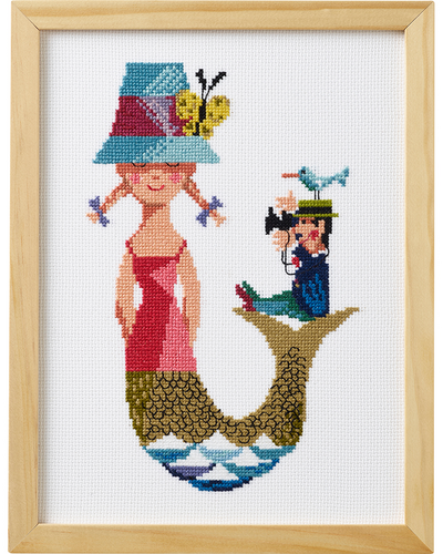 Pakningen indeholder: stof, nål, garn og diagram