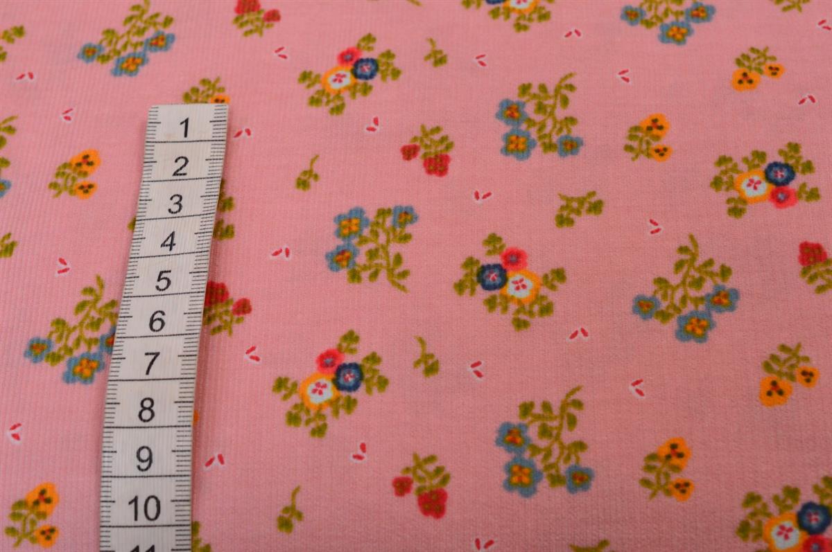 Økotex bomulds fløjl Lyserød m/små blomster