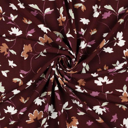 Viscose poplin stretch Flowers, Wine