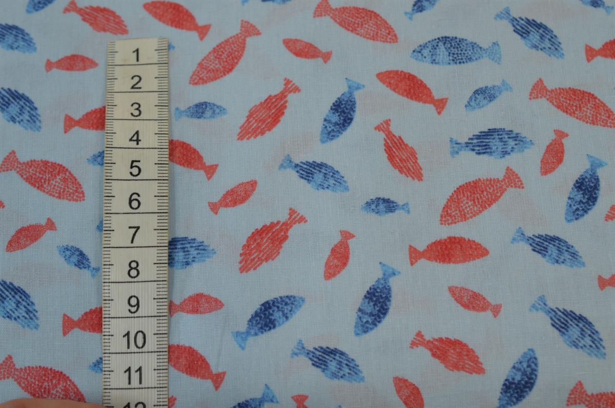 Bomuld/poplin Lyseblå m/Fisk