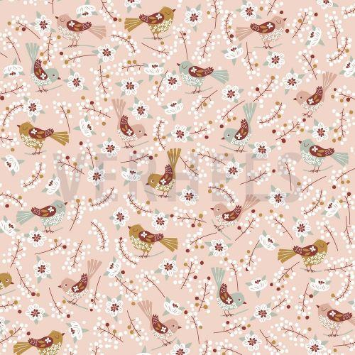 Poplin Sweet birds, light salmon