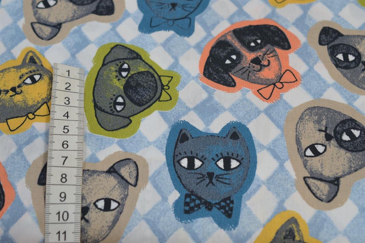 Bomuld/poplin m/Katte og Hundehoveder