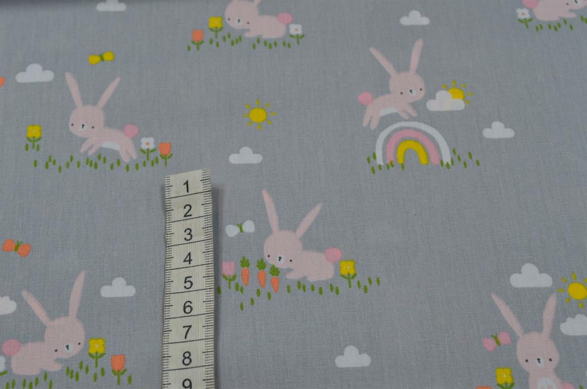 Økotex bomuld/poplin Grå m/Kanin