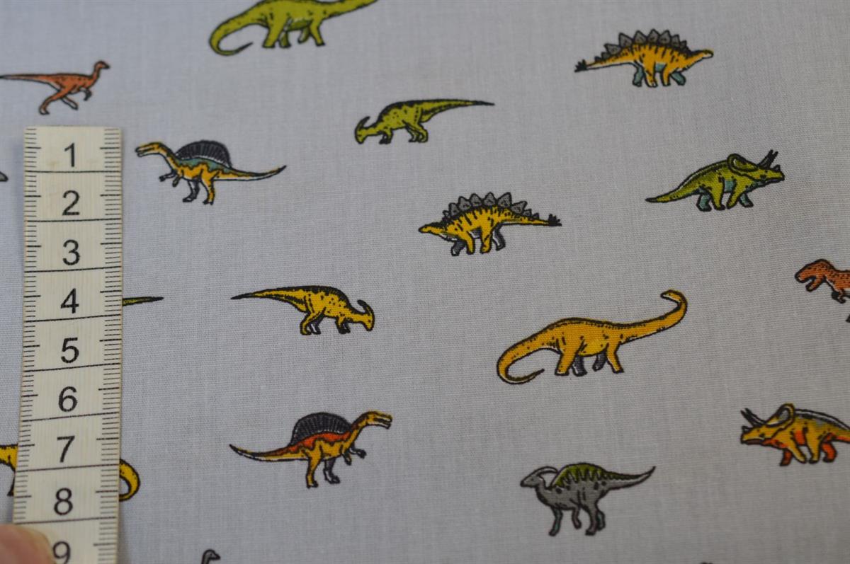 Bomuld/poplin Lysgrå m/Dinosaur