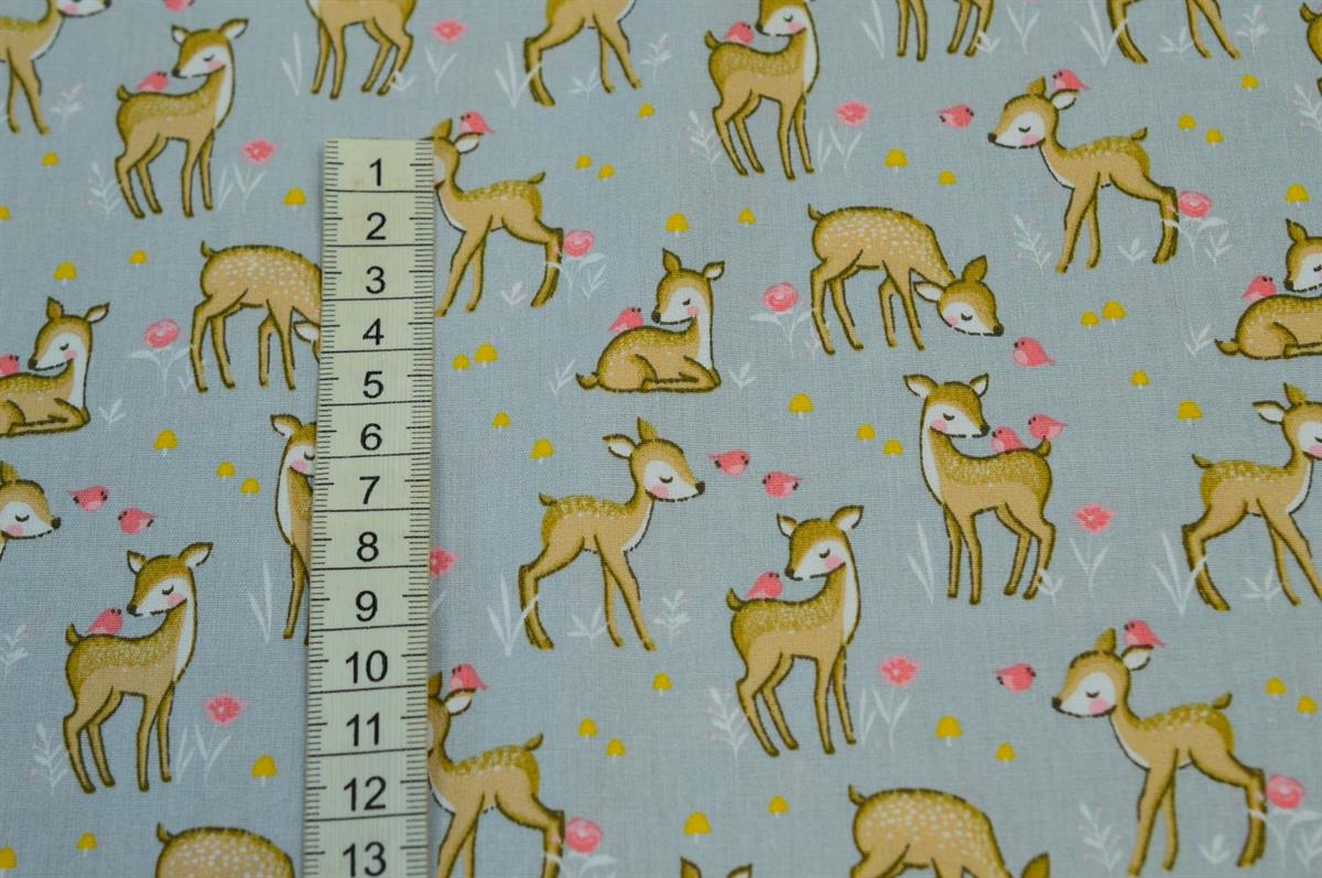 Bomuld/poplin Lysgrå m/ Dådyr
