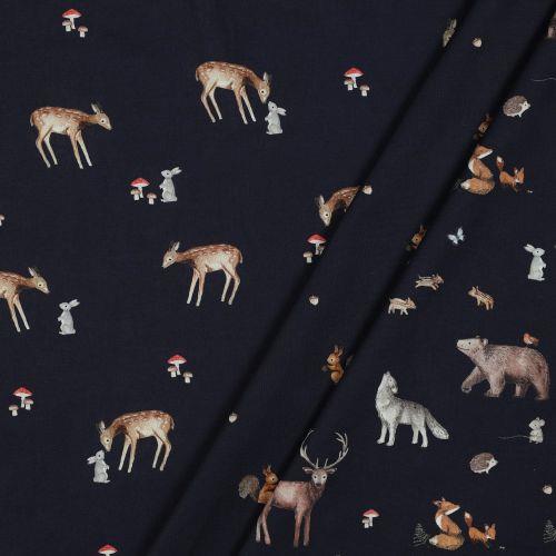 Poplin Digital forest Animals, Navy