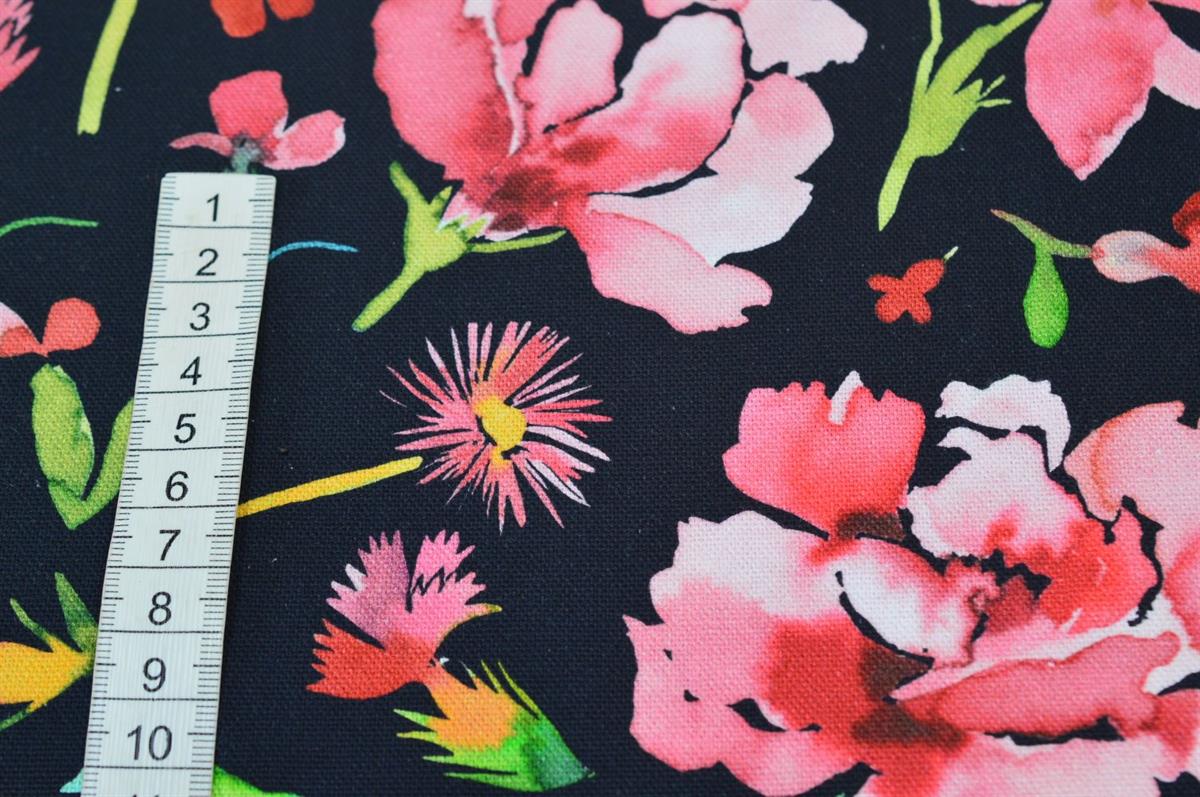 Canvas Sort m/blomster