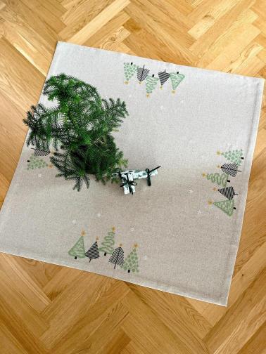 Dette lille juletræstæppe med grønne juletræer fra Pomp Stitch design, er til dig der elsker jul, på en stilren måde.