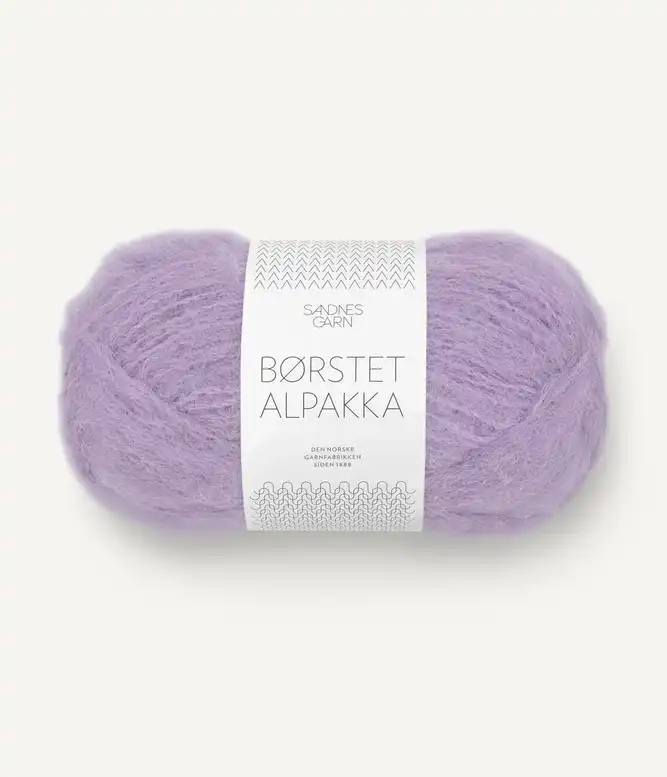 Børstet Alpakka består af alpakafiber tvundet sammen med en stærk nylontråd, som holder det hele sammen når alpakafibrene bliver børstet op. Dette giver et blødt, let og luftigt garn med et loddent udtryk.