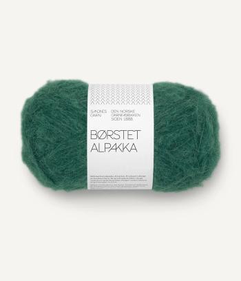 Børstet Alpakka består af alpakafiber tvundet sammen med en stærk nylontråd, som holder det hele sammen når alpakafibrene bliver børstet op. Dette giver et blødt, let og luftigt garn med et loddent udtryk.