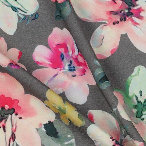 Viscose Digital flowers, Forrest green