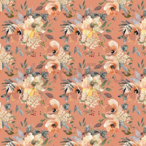 Gots French terry Digital Flowers, Peach