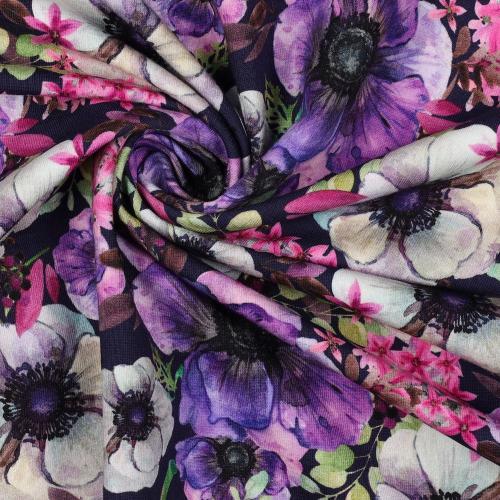 Gots French terry digital Flowers, Navy