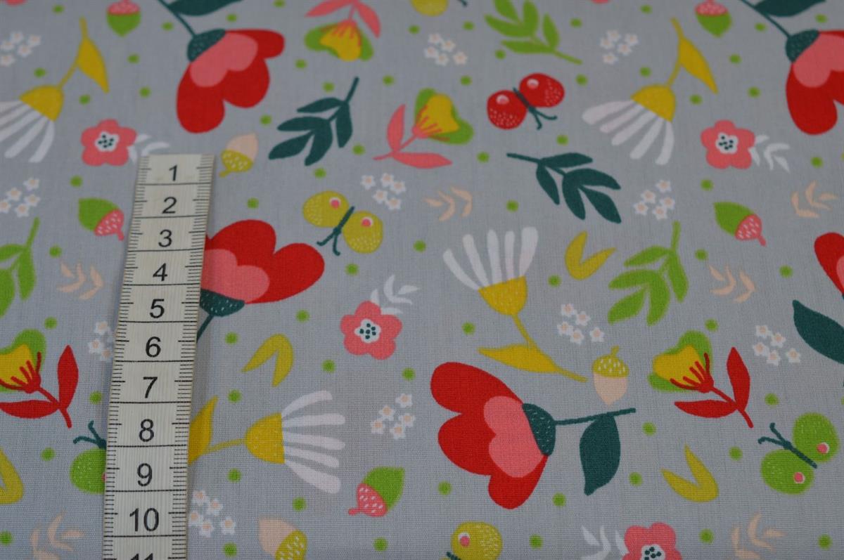 Økotex bomuld/poplin Grå m/blomster