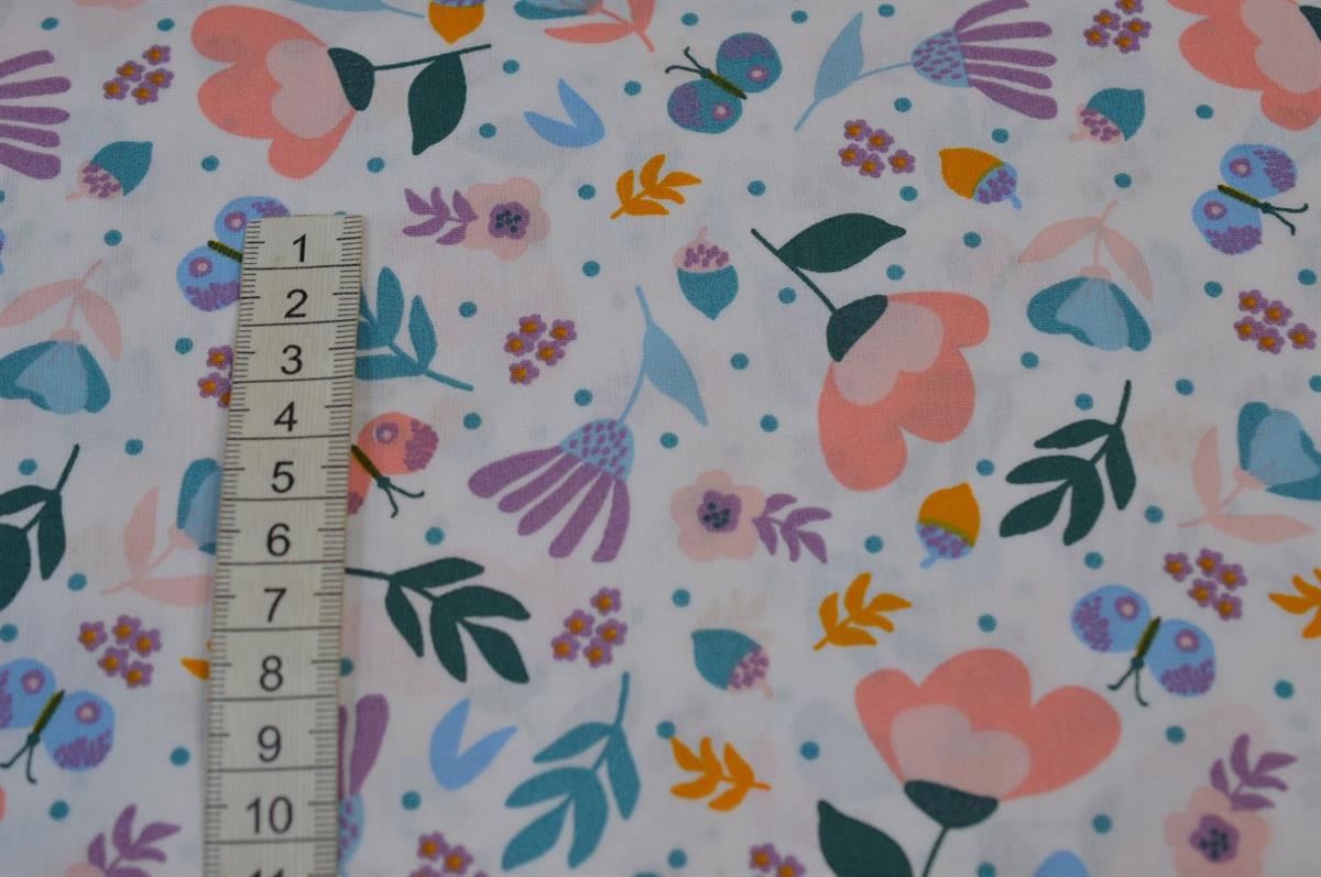 Økotex bomuld/poplin Hvid m/blomster