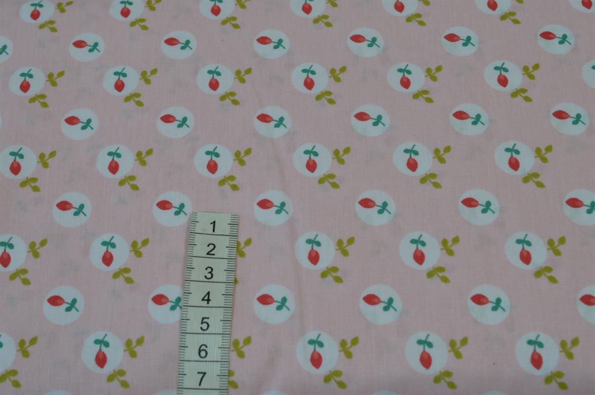 Bomuld/poplin Lyserød m/blomst