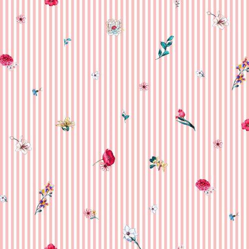 Poplin digital flowers with stripes, Rose