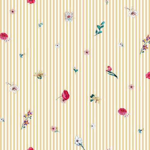 Poplin digital flowers with stripes, Light yellow
