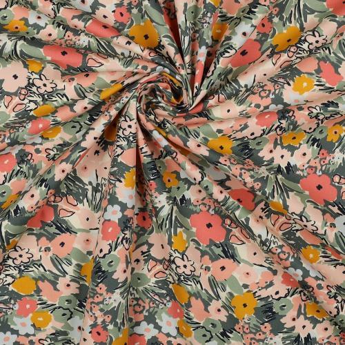 Fine poplin Floral fest, Ecru/blush