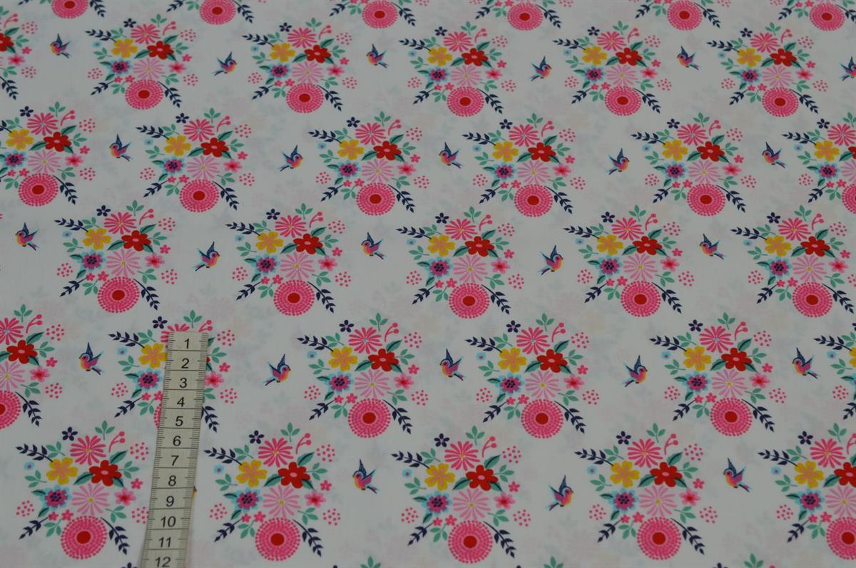 Økotex bomuld/poplin Hvid m/blomster