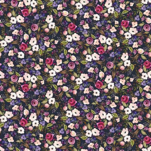 Poplin digital Flowers, Navy