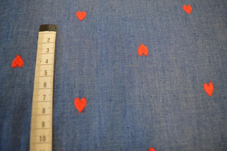 Chambray embroidery Hearts denim